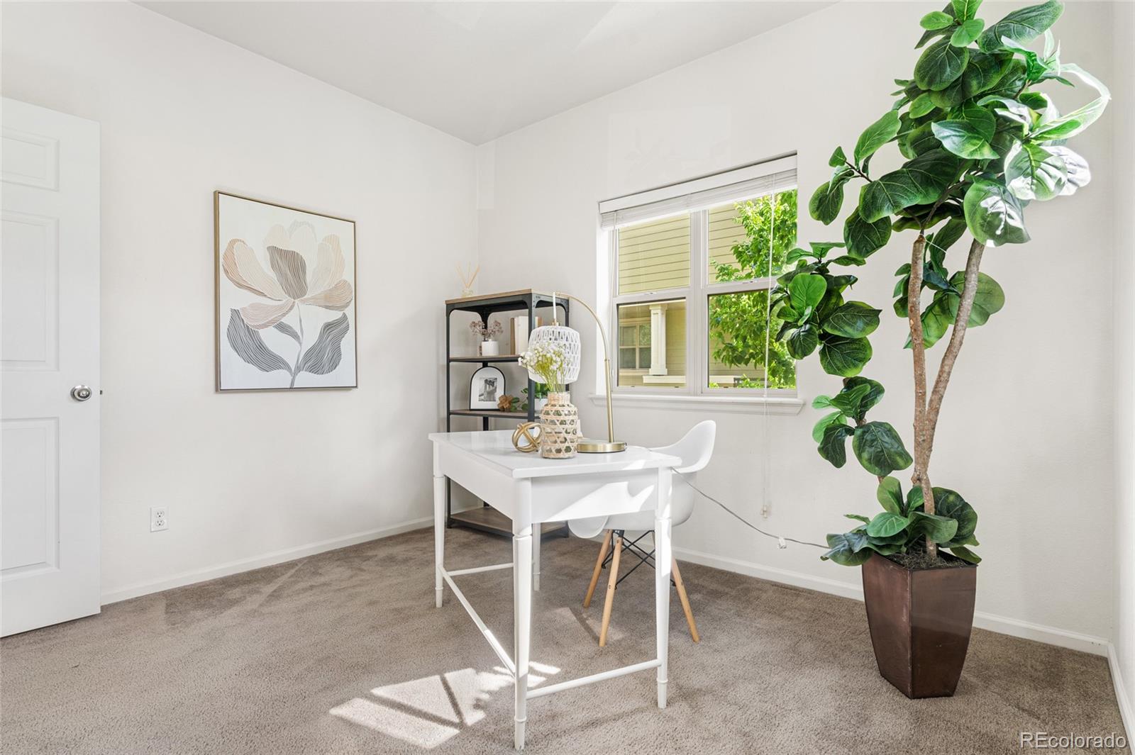 A third non-conforming bedroom acts as a versatile den which offers the ideal setup for a home office, workout space, or creative retreat. Bedrooms are generously sized, with the primary suite featuring a private ensuite bath. A second 3/4 bathroom, in-unit laundry (washer and dryer included), and a one-car garage right out your front door, add to the home's everyday convenience.